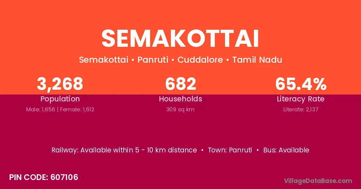 Panruti is the nearest town to Semakottai village for major economic activities