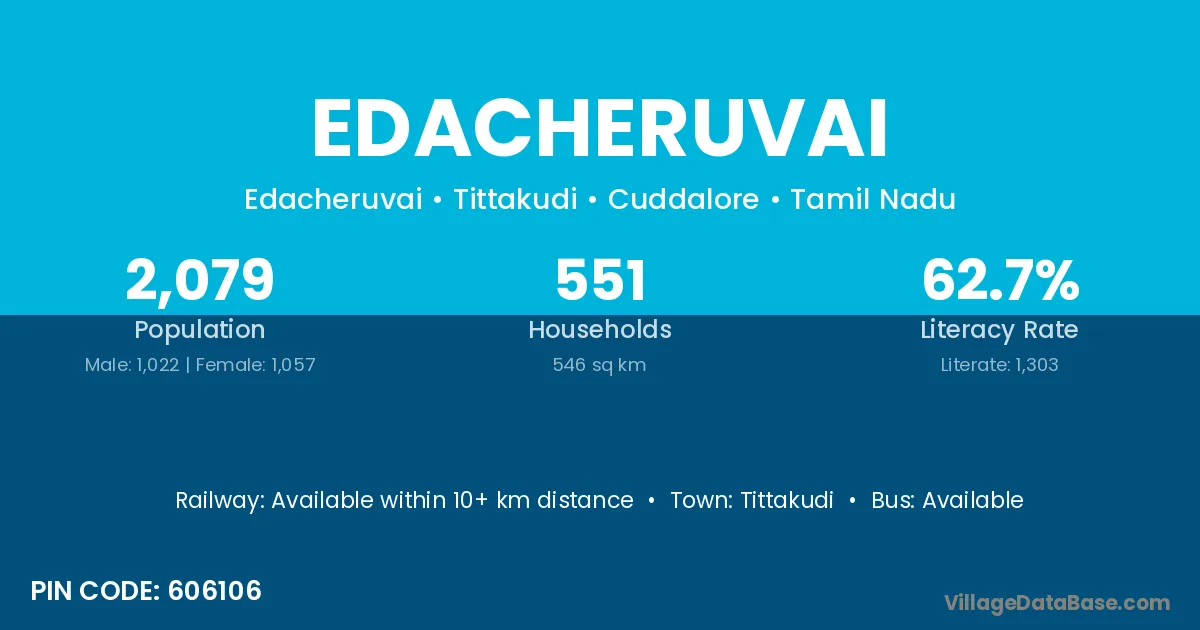 Tittakudi is the nearest town to Edacheruvai village for major economic activities