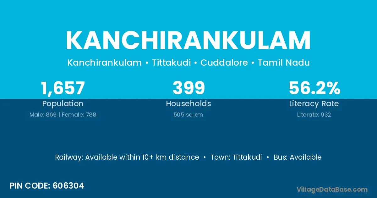 According to Census 2011 information, the village code of Kanchirankulam village is 606304.