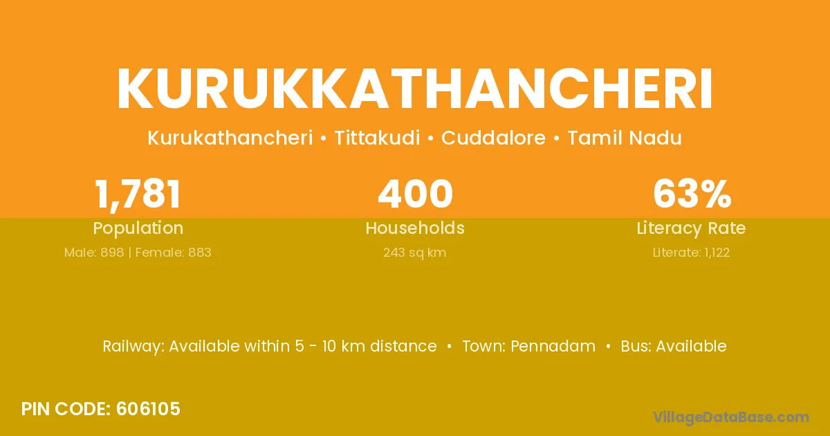 According to Census 2011 information, the village code of Kurukkathancheri village is 606105.