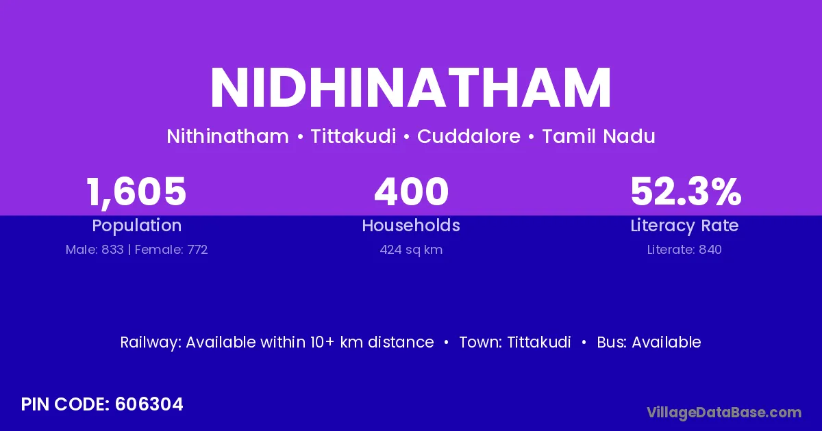 Tittakudi is the nearest town to Nidhinatham village for major economic activities
