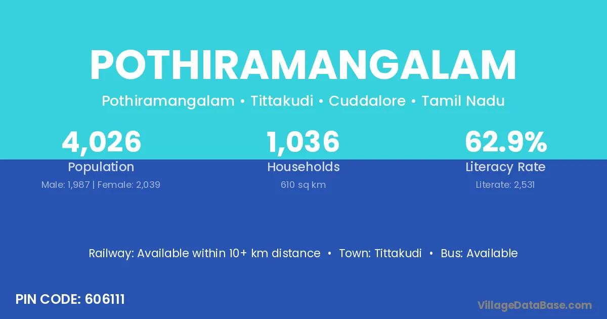 Tittakudi is the nearest town to Pothiramangalam village for major economic activities