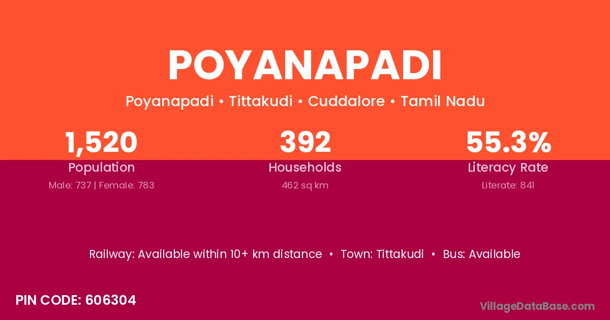 Tittakudi is the nearest town to Poyanapadi village for major economic activities