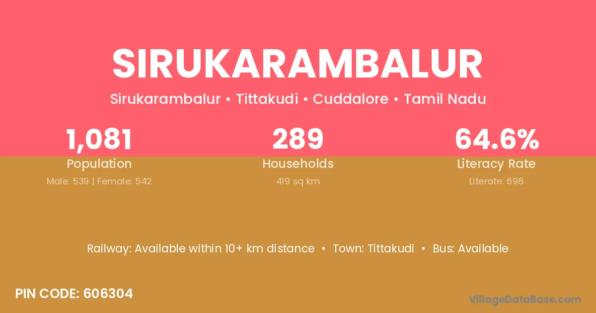 Tittakudi is the nearest town to Sirukarambalur village for major economic activities
