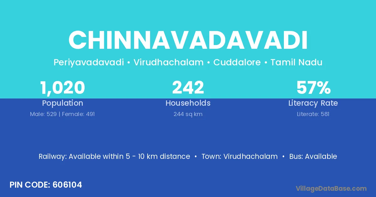 According to Census 2011 information, the village code of Chinnavadavadi village is 606104.