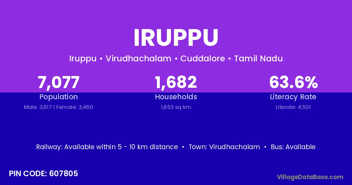 Virudhachalam is the nearest town to Iruppu village for major economic activities