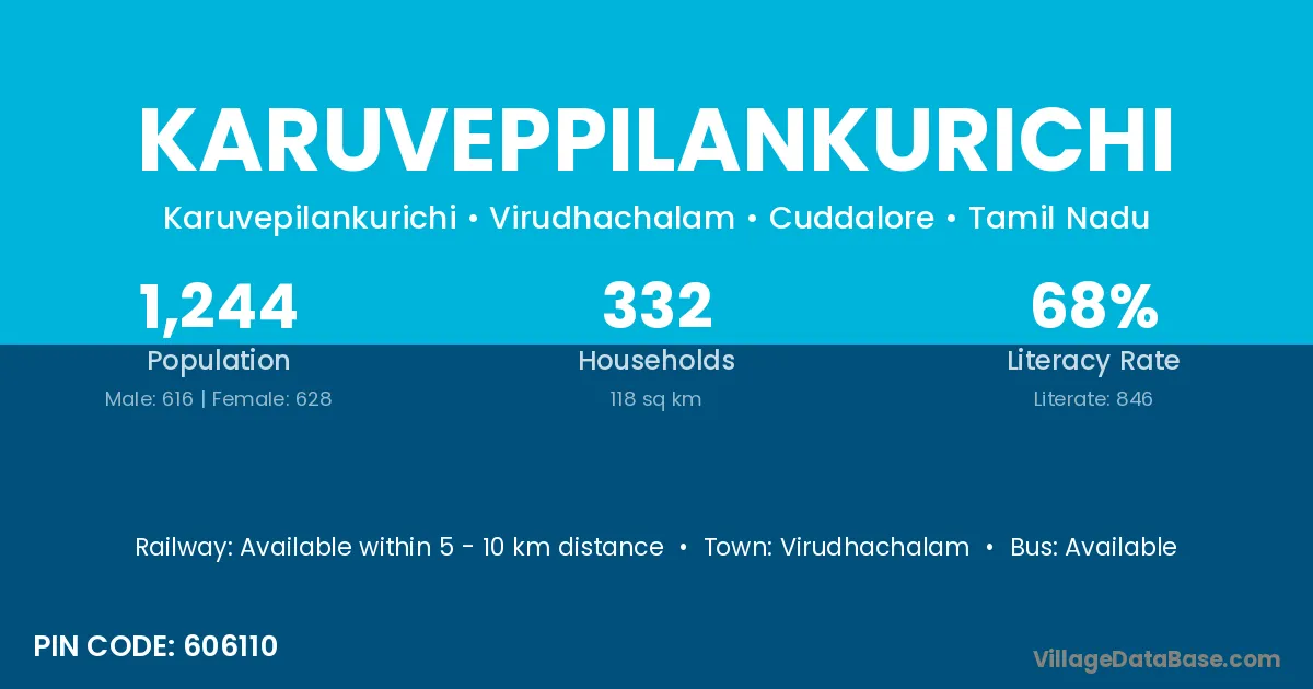 Virudhachalam is the nearest town to Karuveppilankurichi village for major economic activities