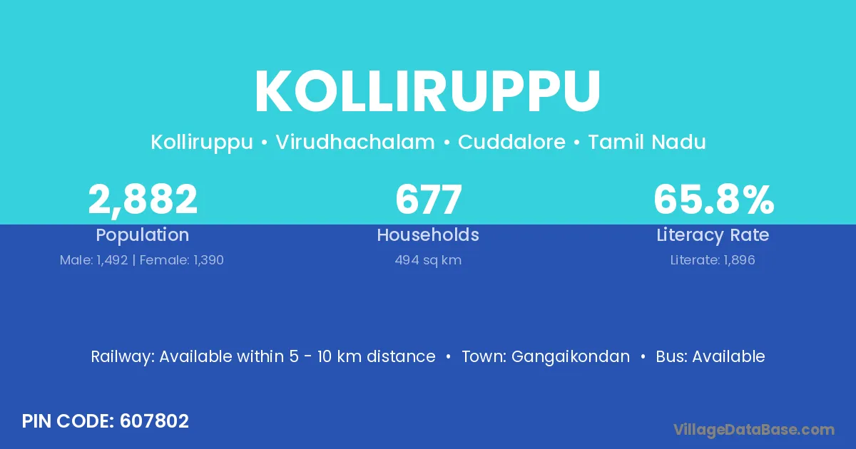According to Census 2011 information, the village code of Kolliruppu village is 607802.