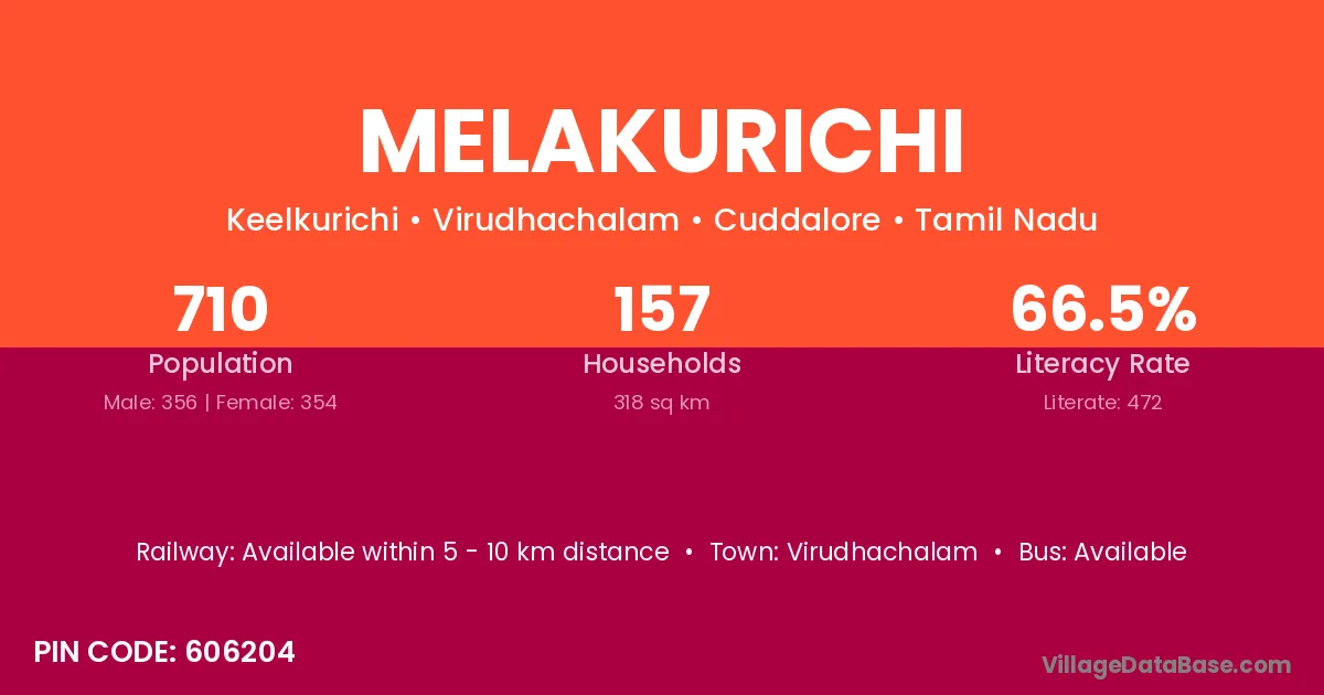 Virudhachalam is the nearest town to Melakurichi village for major economic activities
