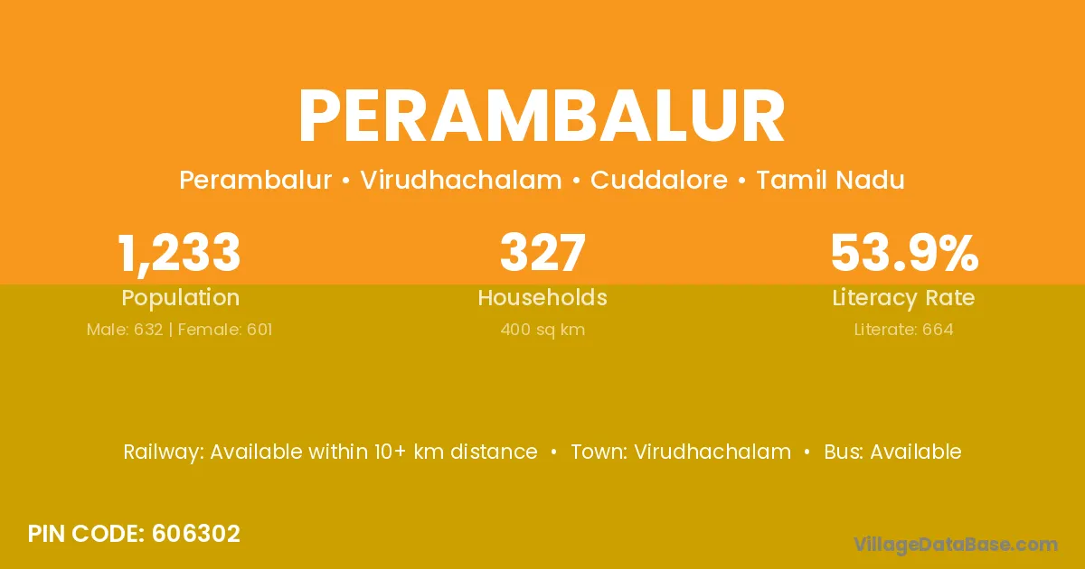 According to Census 2011 information, the village code of Perambalur village is 606302.