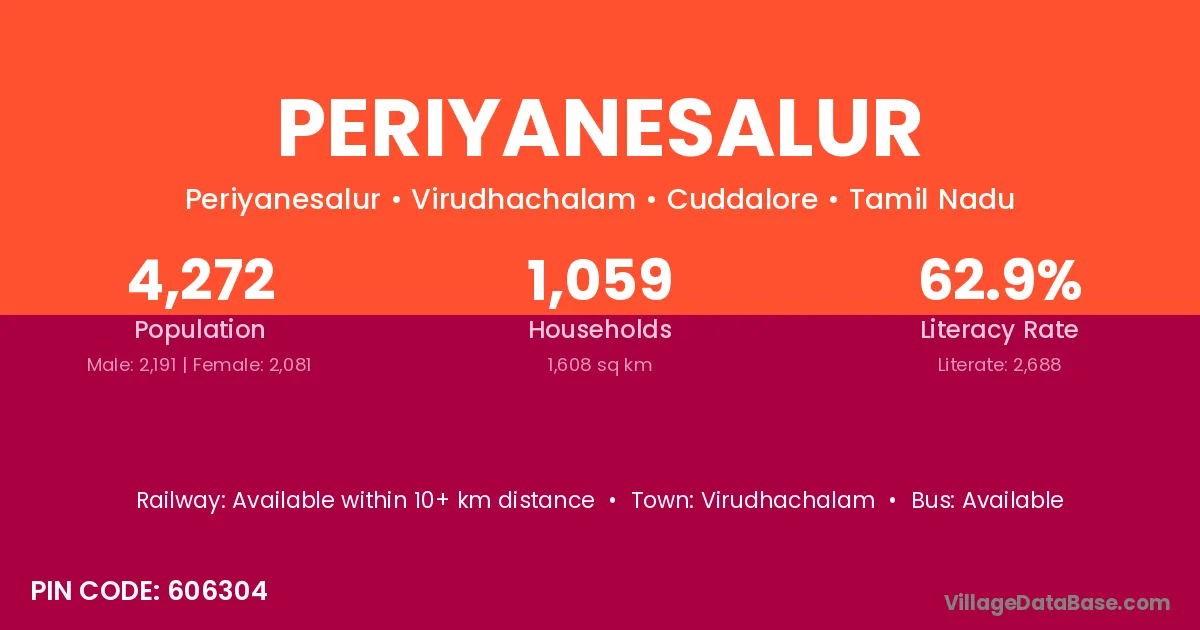 Virudhachalam is the nearest town to Periyanesalur village for major economic activities