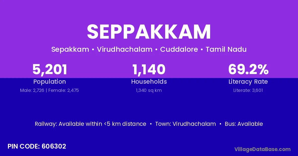 Virudhachalam is the nearest town to Seppakkam village for major economic activities