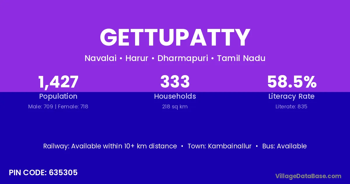 According to Census 2011 information, the village code of Gettupatty village is 635305.