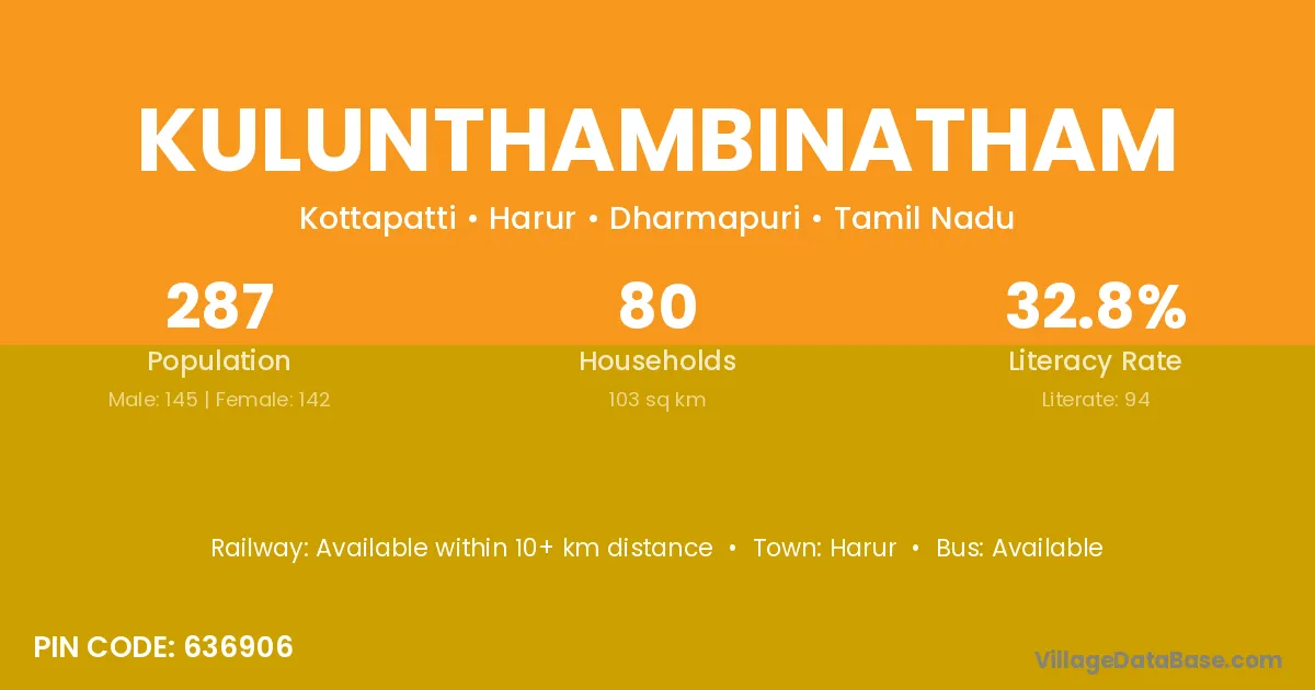 Kulunthambinatham village has a total population of 287 people, of which 145 are males and 142 are females.