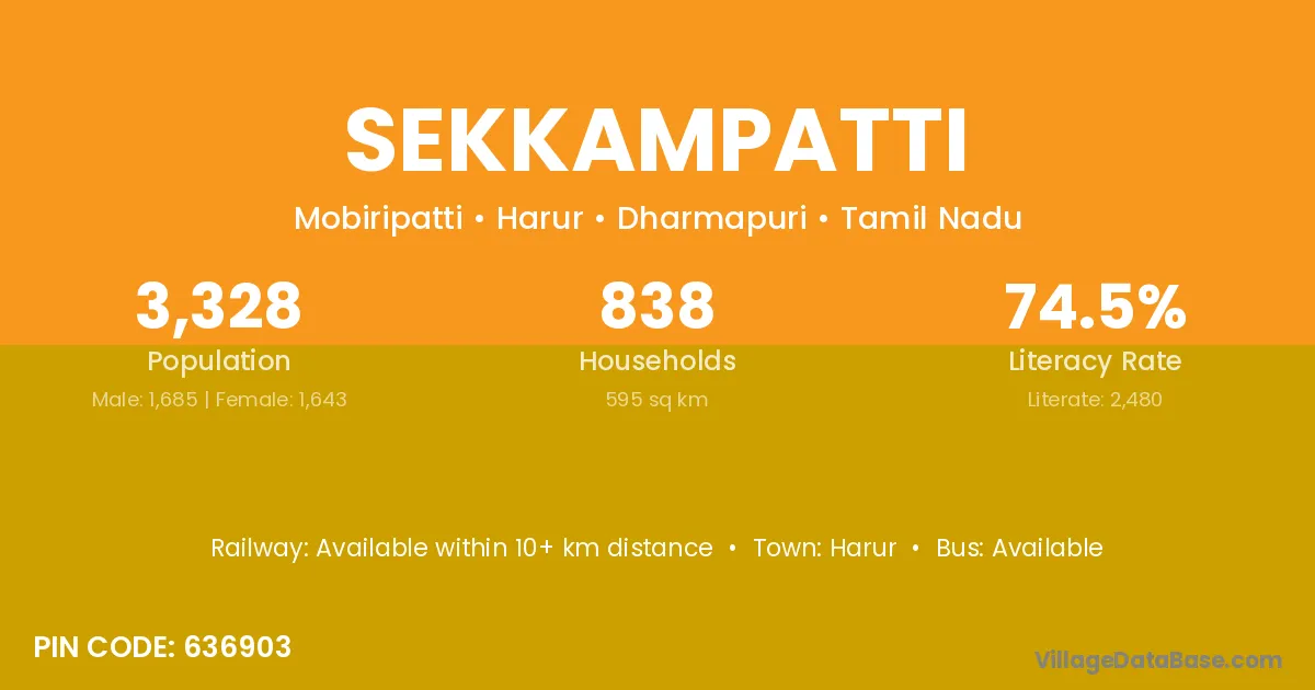 Sekkampatti village has a total population of 3,328 people, of which 1,685 are males and 1,643 are females.