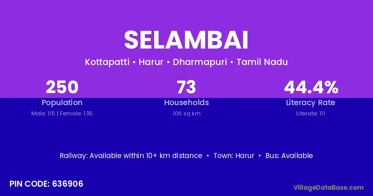 Selambai village is located in the Harur Taluka of the Dharmapuri district in Tamil Nadu .