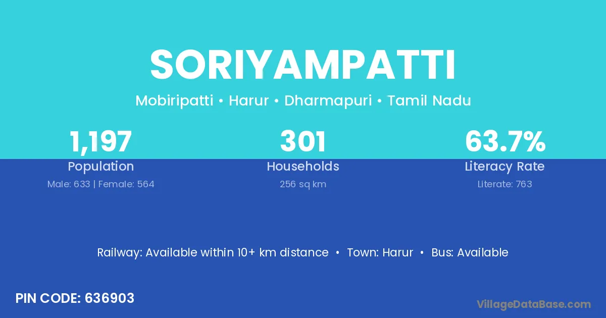 Harur is the nearest town to Soriyampatti village for major economic activities