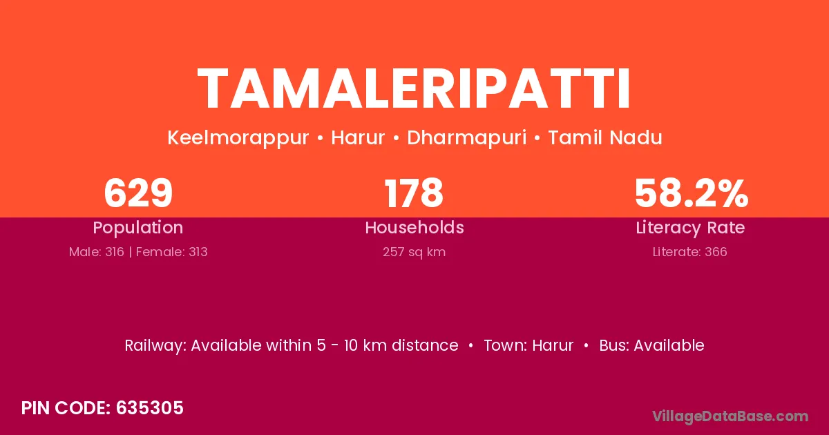 Tamaleripatti village has a total population of 629 people, of which 316 are males and 313 are females.
