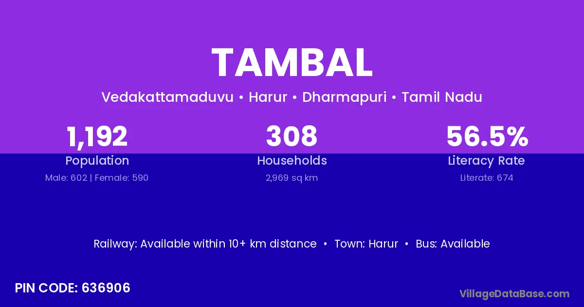 According to Census 2011 information, the village code of Tambal village is 636906.