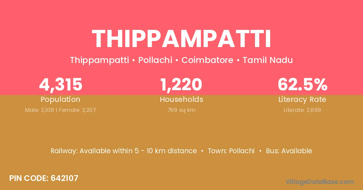 Harur (10 km) is the nearest town to Thippampatti village for major economic activities and is located approximately 10 km away.