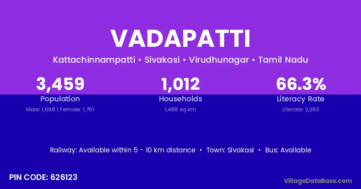 According to Census 2011 information, the village code of Vadapatti village is 636902.