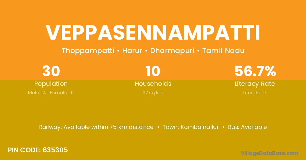 Veppasennampatti village has a total population of 30 people, of which 14 are males and 16 are females.