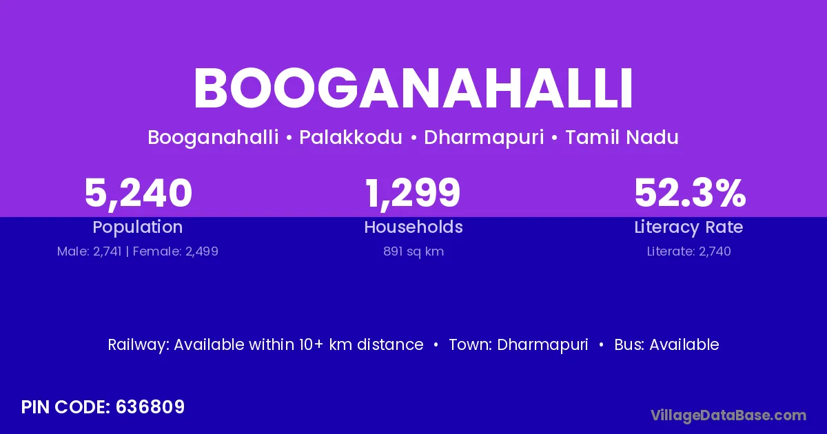 Dharmapuri is the nearest town to Booganahalli village for major economic activities