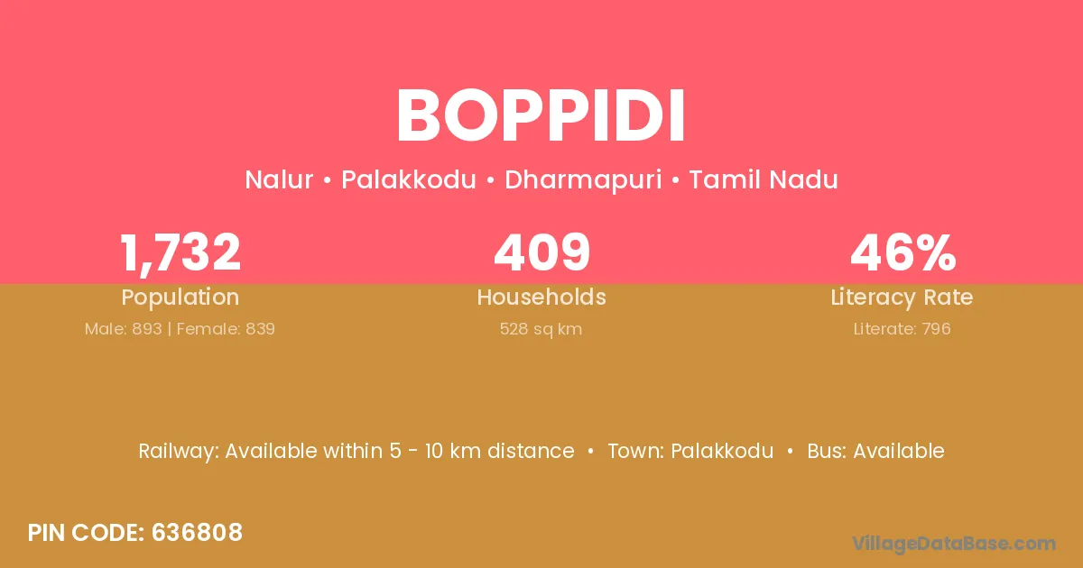 Boppidi village has a total population of 1,732 people, of which 893 are males and 839 are females.