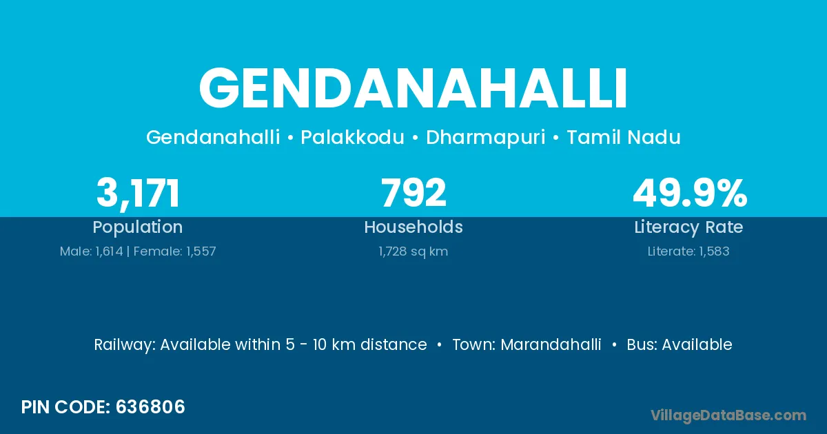 Marandahalli is the nearest town to Gendanahalli village for major economic activities