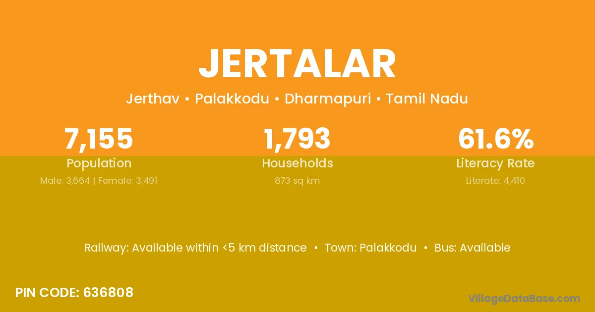 Palakkodu is the nearest town to Jertalar village for major economic activities