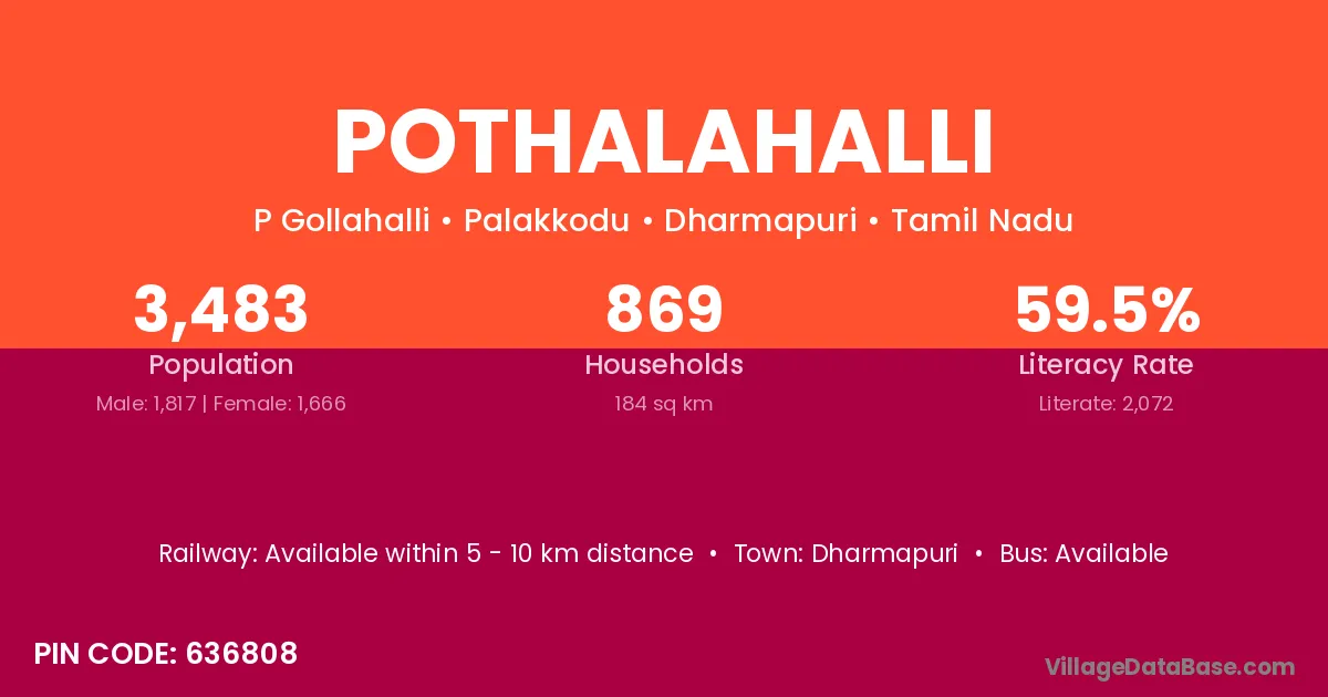 Dharmapuri is the nearest town to Pothalahalli village for major economic activities
