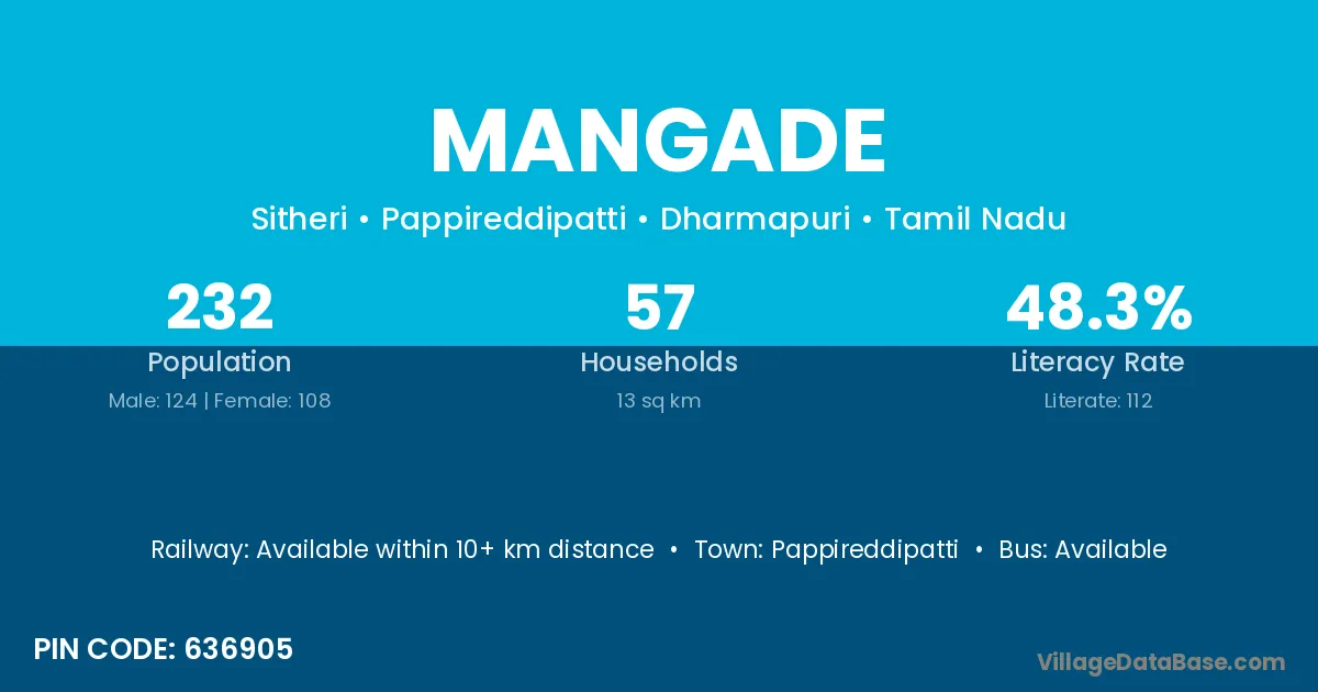 Pappireddipatti is the nearest town to Mangade village for major economic activities