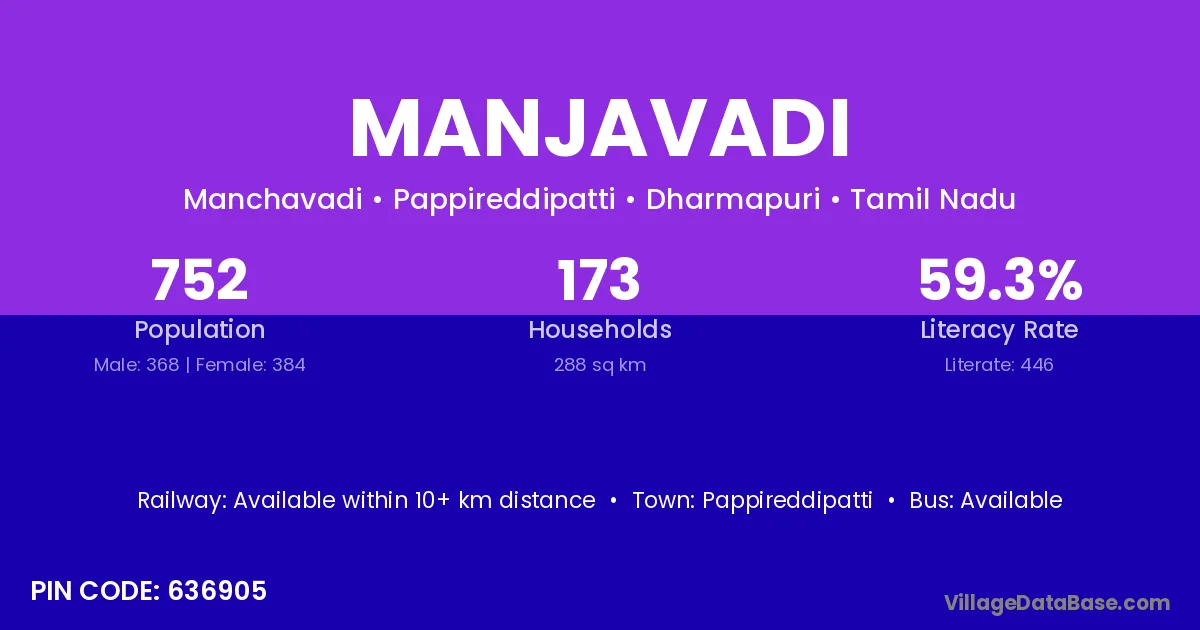 Pappireddipatti is the nearest town to Manjavadi village for major economic activities