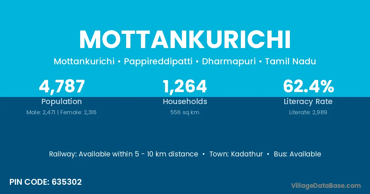 There are approximately 1,264 households in Mottankurichi village.