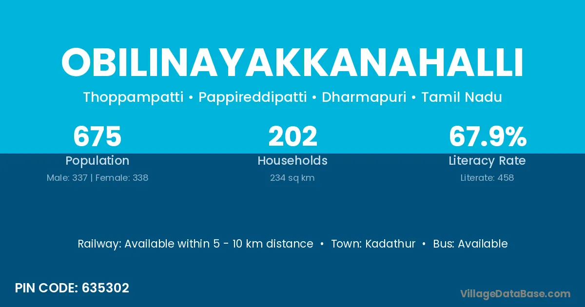 Kadathur is the nearest town to Obilinayakkanahalli village for major economic activities