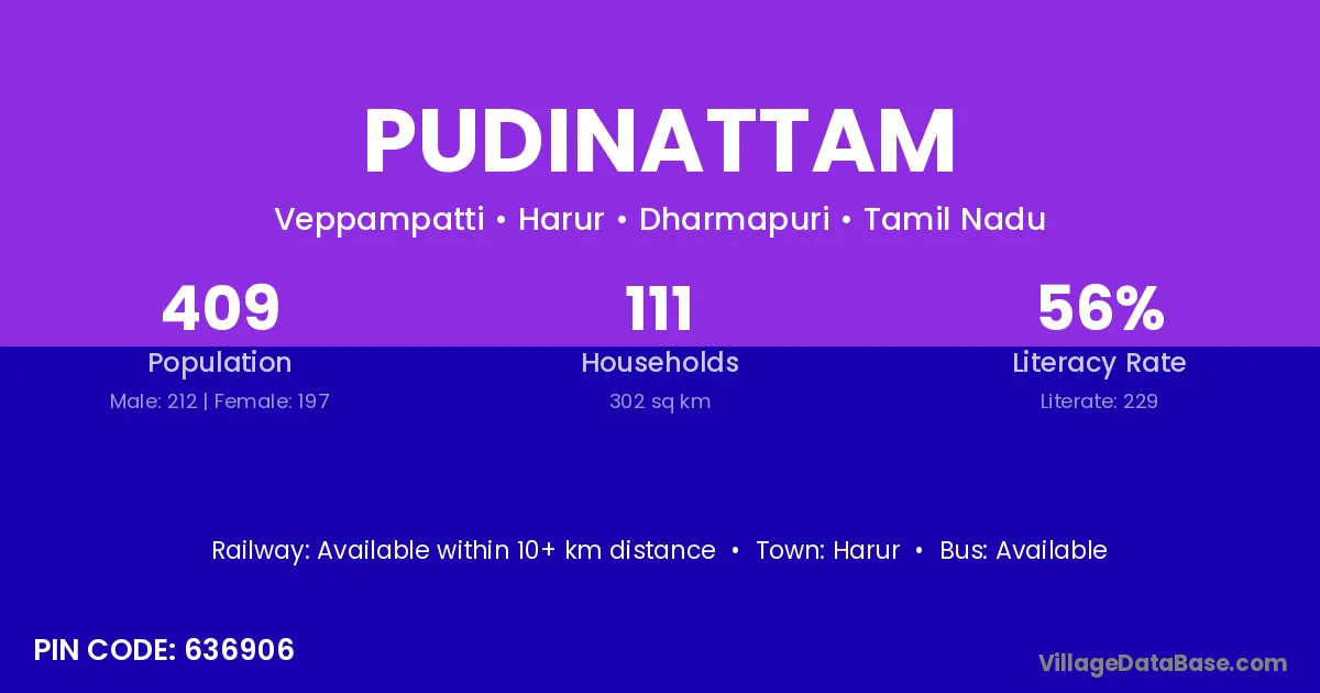 Pappireddipatti is the nearest town to Pudinattam village for major economic activities