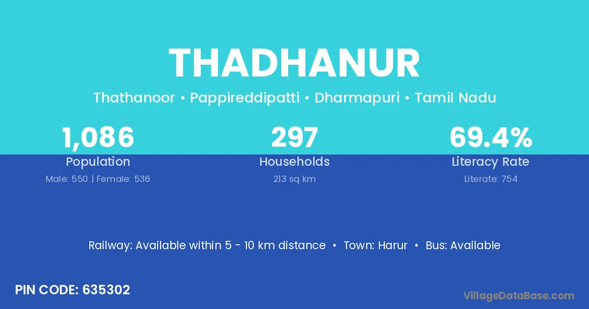 According to Census 2011 information, the village code of Thadhanur village is 635302.