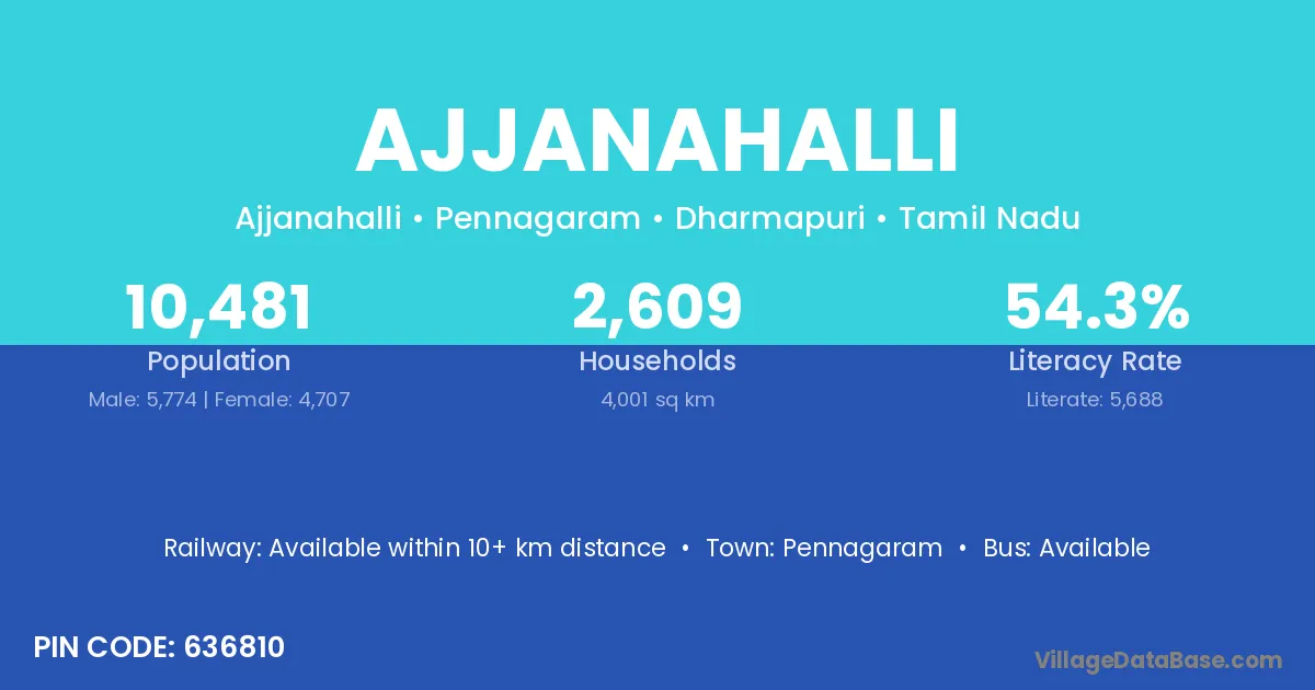 Pennagaram is the nearest town to Ajjanahalli village for major economic activities