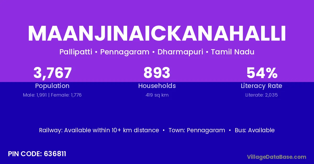 Pennagaram is the nearest town to Maanjinaickanahalli village for major economic activities