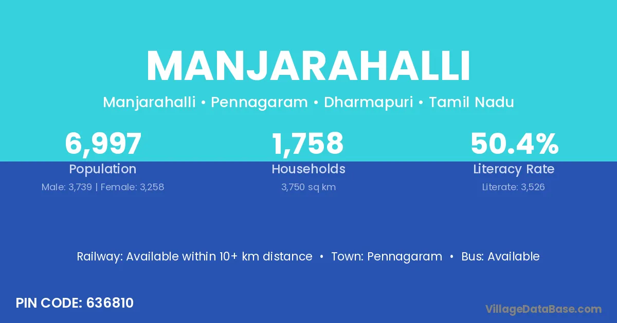 Pennagaram is the nearest town to Manjarahalli village for major economic activities