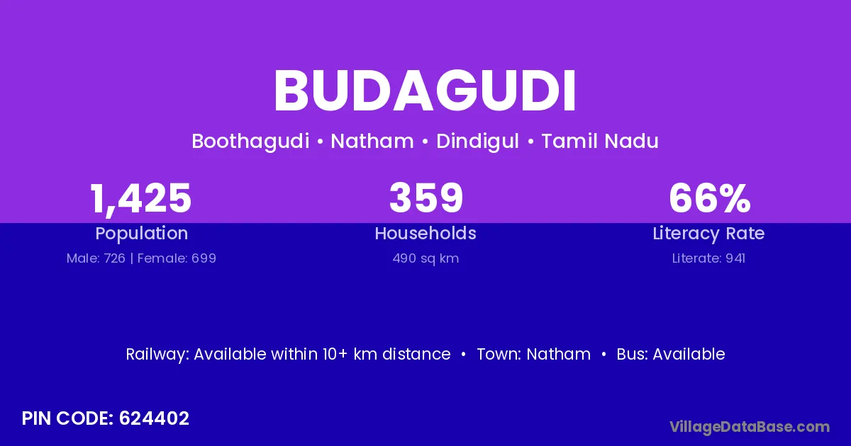 Natham is the nearest town to Budagudi village for major economic activities