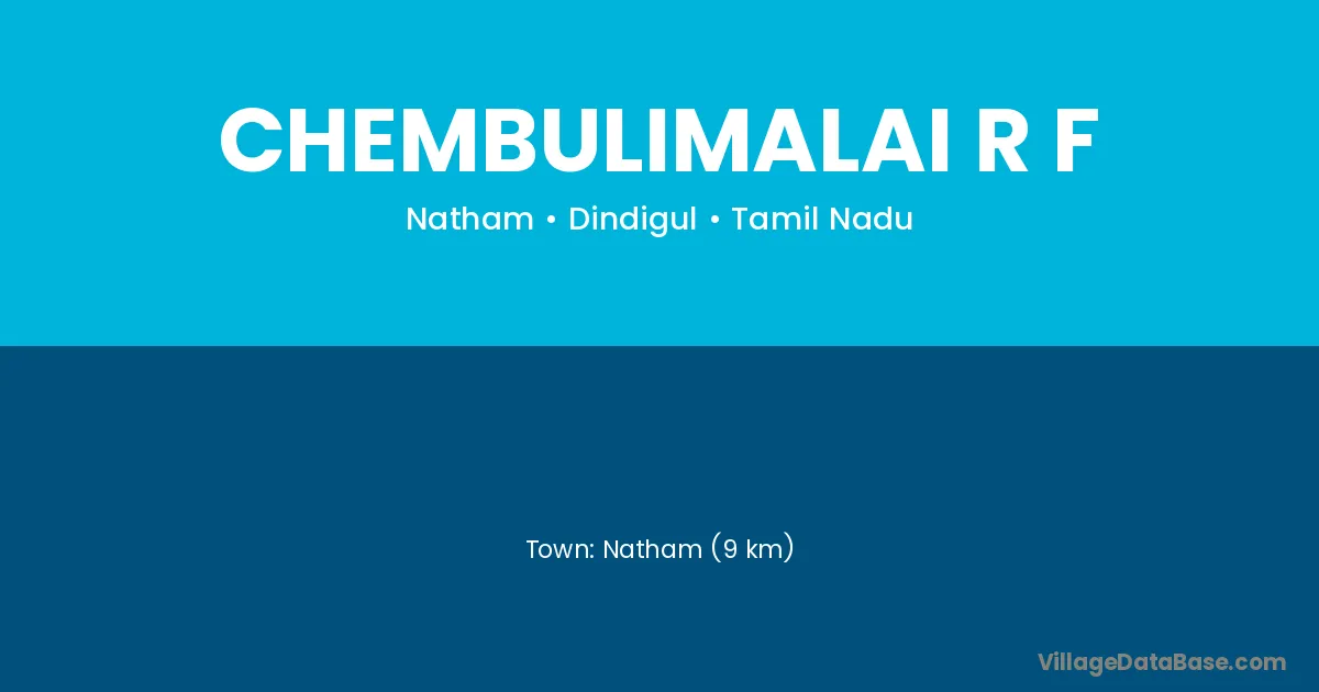 Natham (9 km) is the nearest town to Chembulimalai R F village for major economic activities and is located approximately 9 km away.