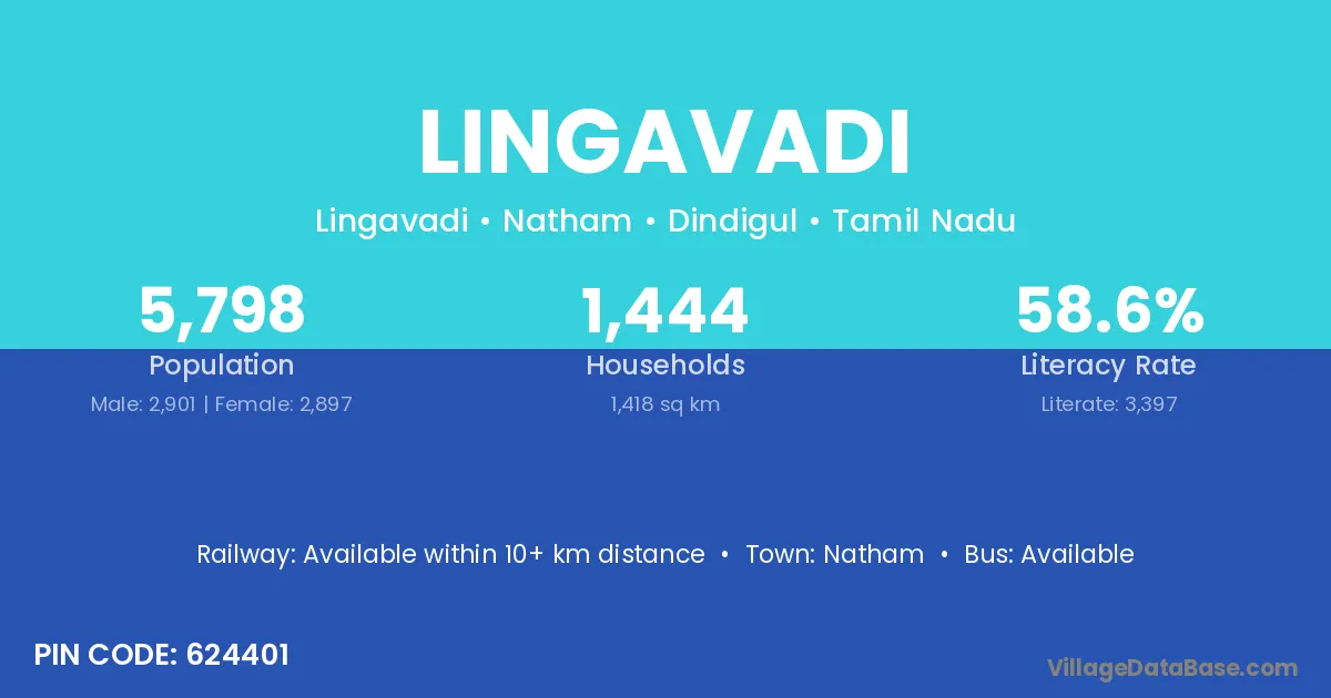 Natham is the nearest town to Lingavadi village for major economic activities