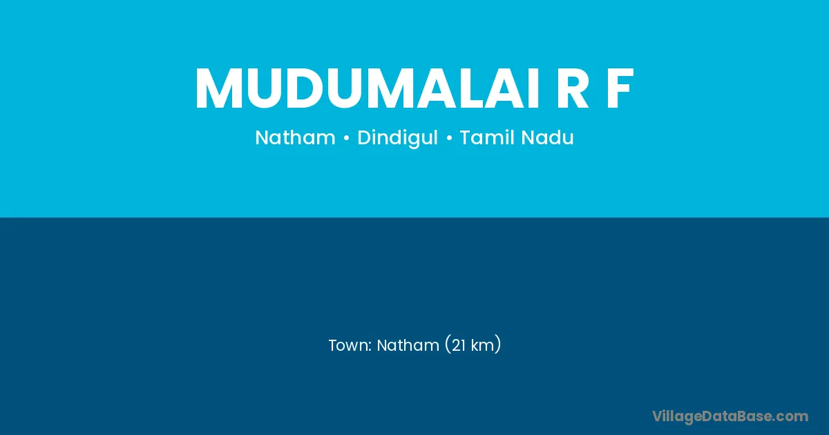 Natham (21 km) is the nearest town to Mudumalai R F village for major economic activities and is located approximately 21 km away.