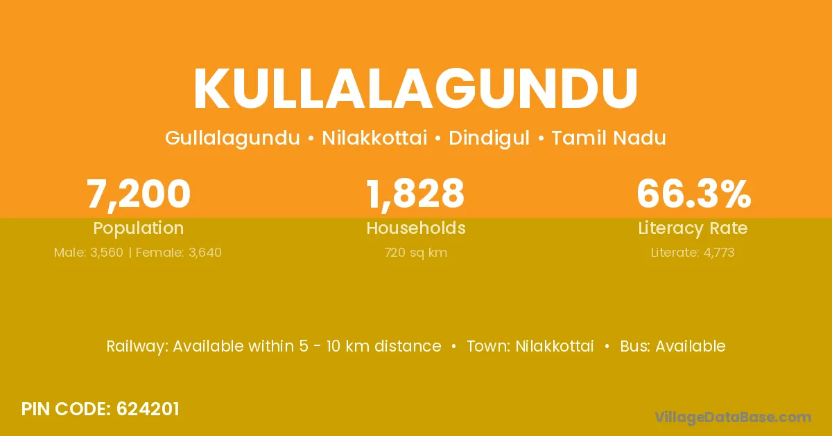 Nilakkottai is the nearest town to Kullalagundu village for major economic activities
