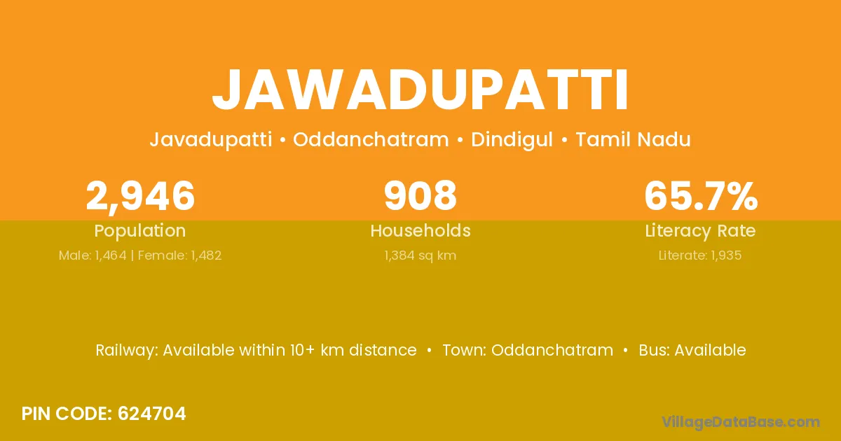 Oddanchatram is the nearest town to Jawadupatti village for major economic activities
