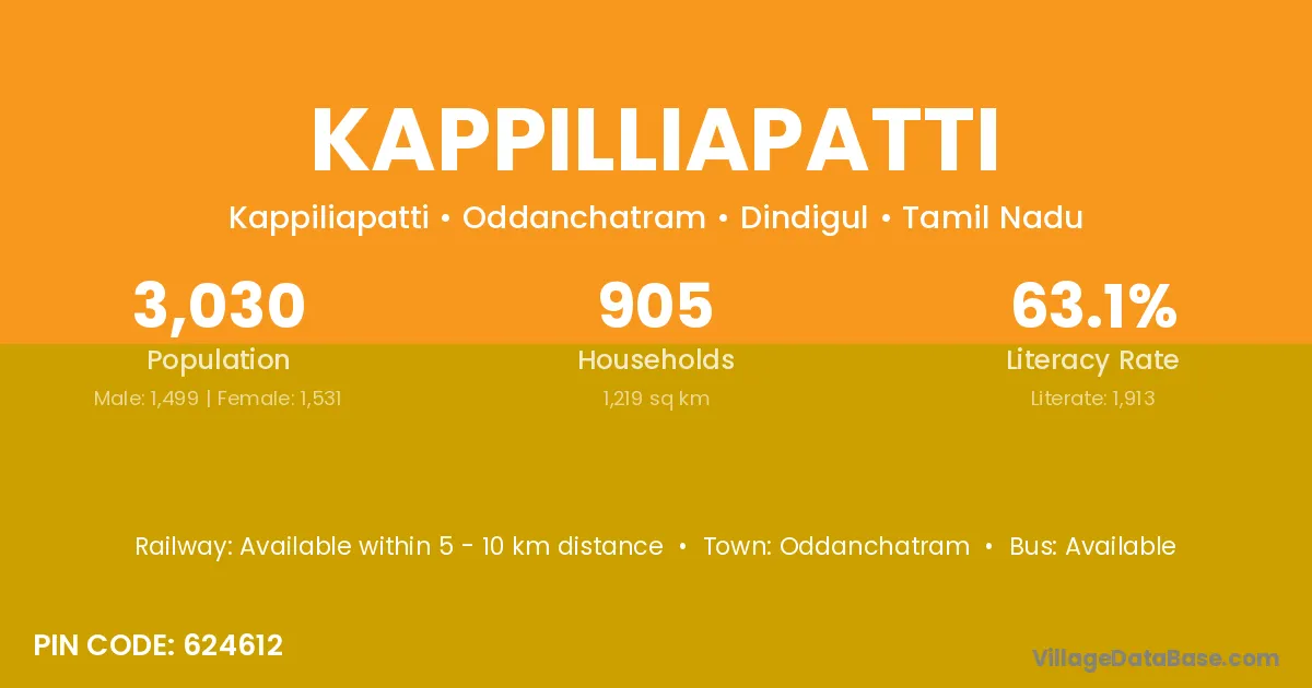According to Census 2011 information, the village code of Kappilliapatti village is 624612.
