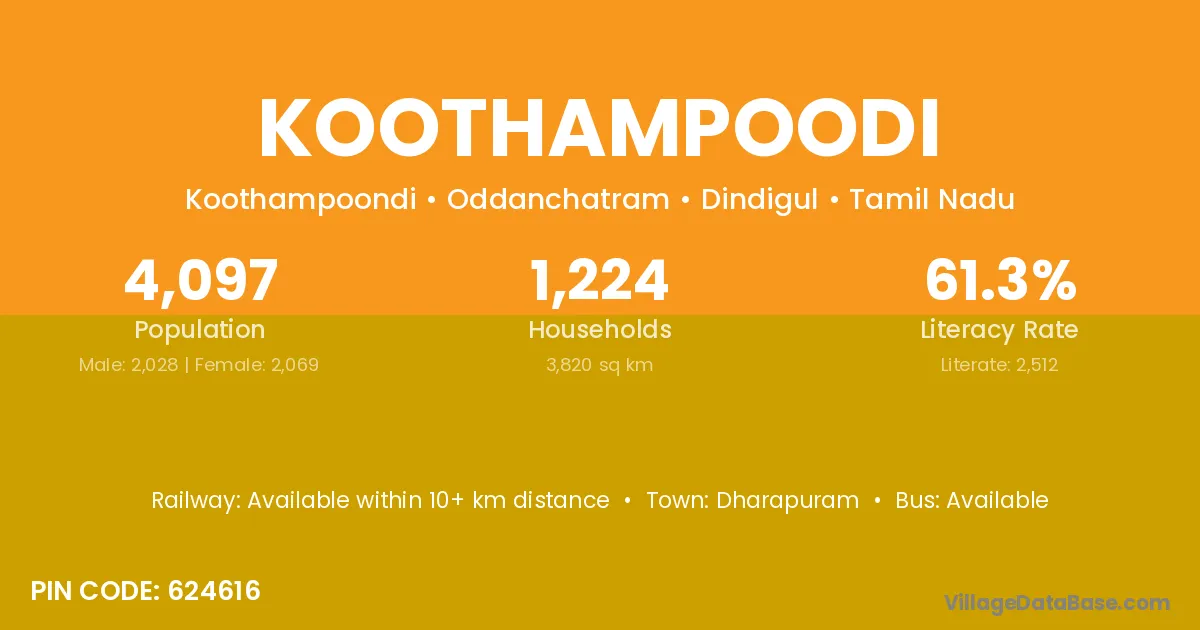 According to Census 2011 information, the village code of Koothampoodi village is 624616.