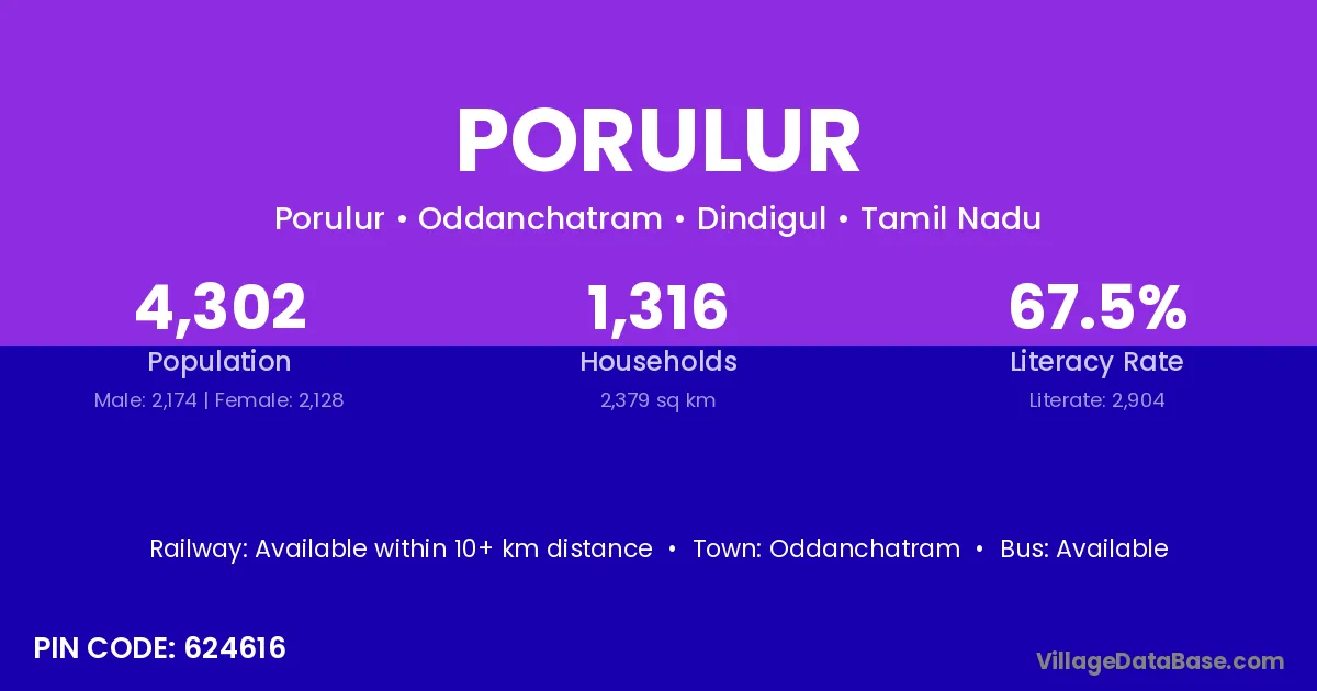 Oddanchatram is the nearest town to Porulur village for major economic activities