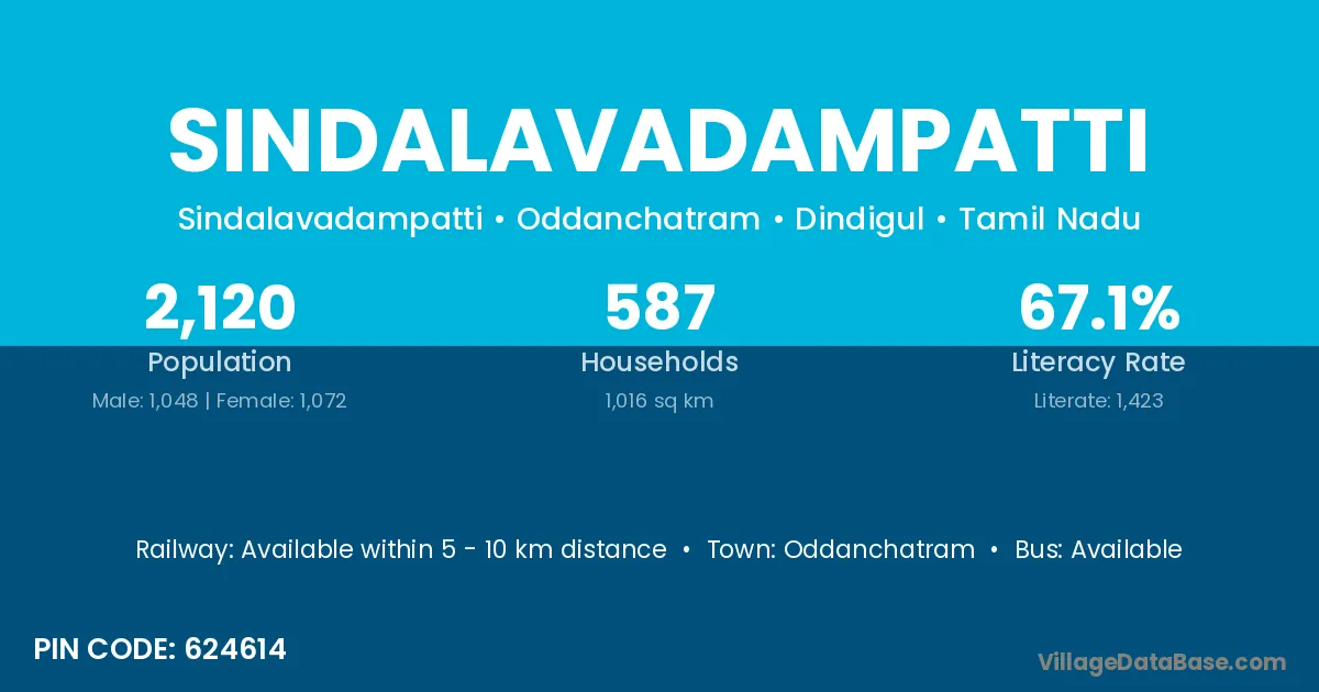 Oddanchatram is the nearest town to Sindalavadampatti village for major economic activities